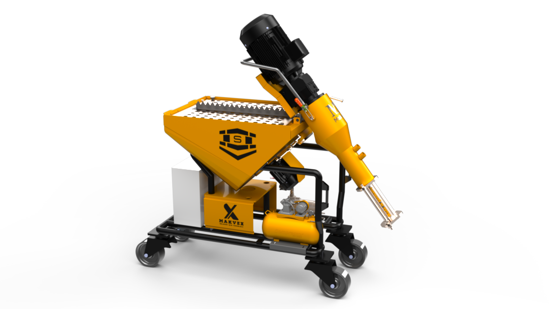 SIVABOT, çimento, harç ve sıva karışımlarını yüksek verimle uygulamak üzere geliştirilmiş profesyonel bir makinedir. Sistem; pnömatik vanalı besleme haznesi, çelik kılıflı rotor–stator pompa, 20 metrelik sıva hortumu, tabanca ve entegre kompresörden oluşur. Mobil kullanım için uygundur ve hem şantiye hem de atölye tipi uygulamalarda kullanılabilir.